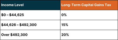 Long-term capital gains (assets held for 1+ year) are taxed at lower rates than short-term capital gains.