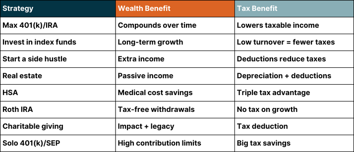 In this guide, we’ll walk you through a clear, practical roadmap to building long-term wealth while minimizing the amount you pay in taxes. Whether you're an employee, entrepreneur, investor, or all of the above, the following strategies can help you keep more of your money working for you.